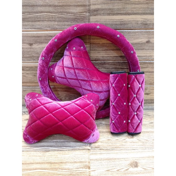 Set Aksesoris Mobil Beludru 3in1 Polos (Tanpa Logo)