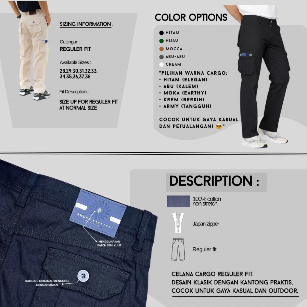 Celana Cargo Panjang Pria Shura Explicit Celana Twill Non Stretch Outfit Santai Pria