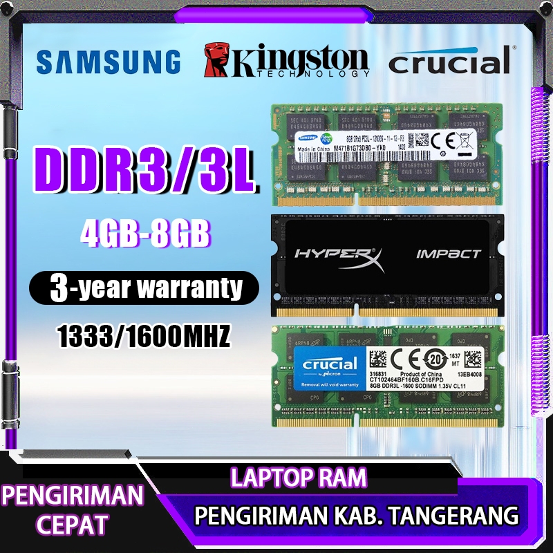 RAM Kingston Ram DDR3 4GB 8GB 1333 1600MHz Samsung Crucial Laptop Ram DDR3L SODIMM Memory Notebook