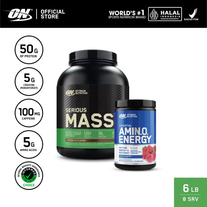 Optimum Nutrition Serious Mass 6 lbs + Essential Amino Energy 270g - Suplemen / Gym