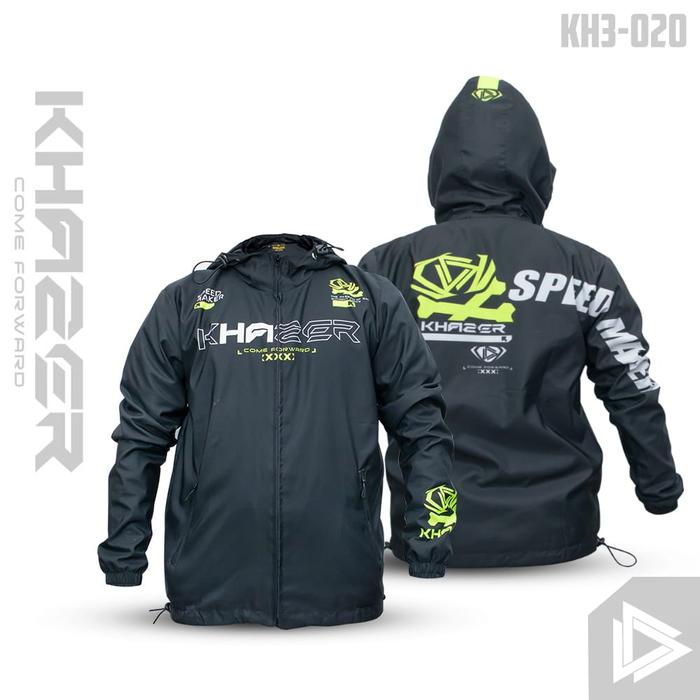 KHAZER JAKET RUNNING SPEED MAKER BLACK GREEN-KH3-020 Sport jaket motor jaket parasut keren