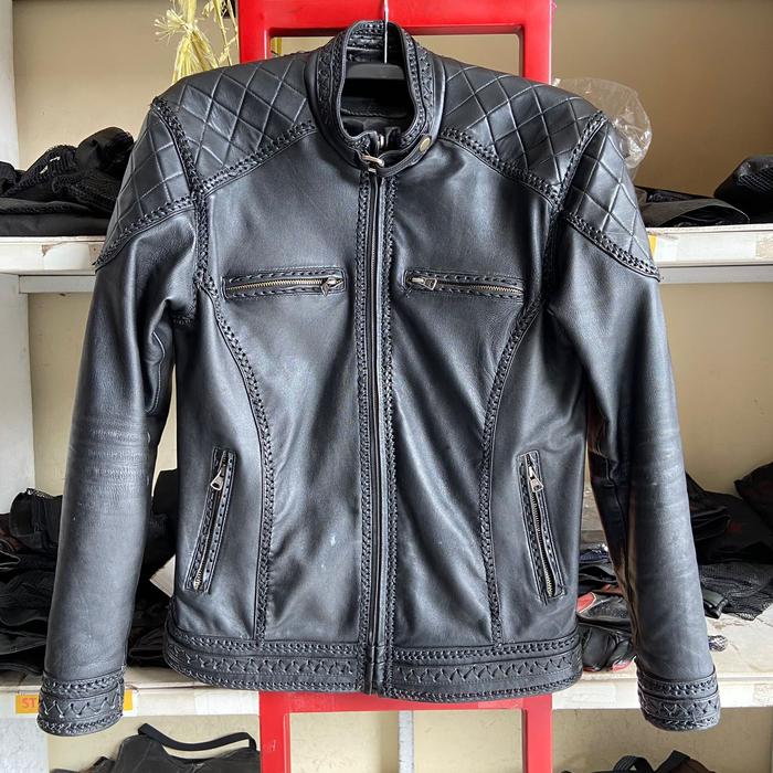 Jaket Kulit Asli Pria Sulam Elegant Nyaman Panjang Casual Hitam Slimfit Cowok Keren Distro