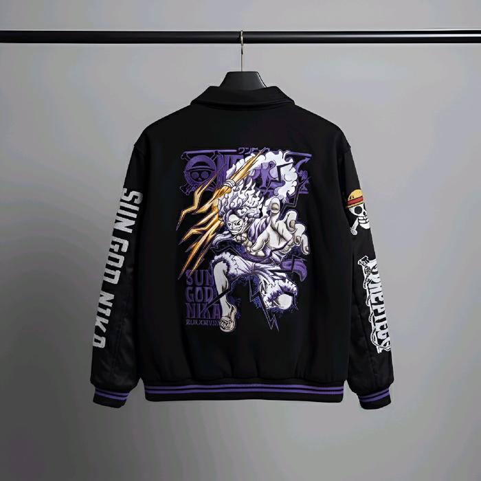 LIMITED VARSITY JACKET ONE PIECE LUFFY BLACK PURPLE SUN GOD NIKA JAKET BASEBALL BORDIR ORIGINAL