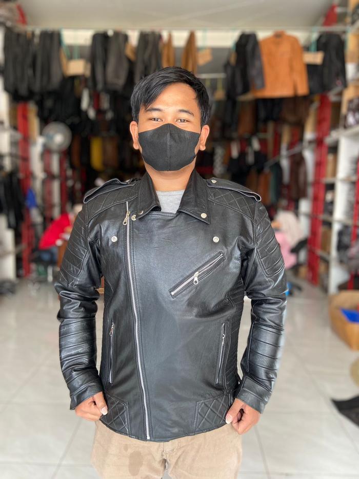 Jaket Kulit motor Ramones racing Bandung Tebal bikers touring Pria Cowok Hitam Keren Casual Distro