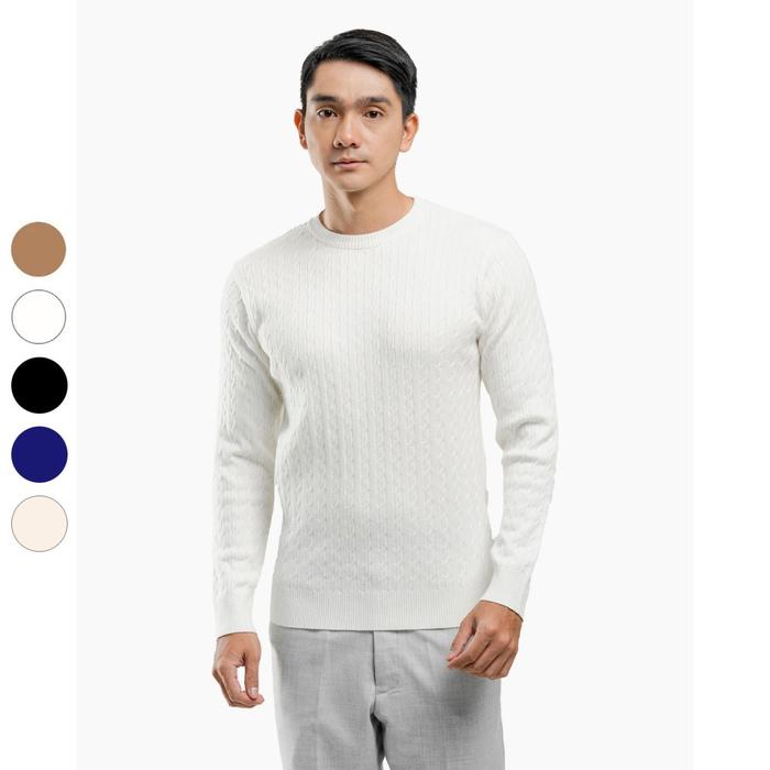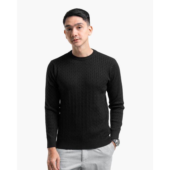 Gomuda Sweater Rajut Pria Viscose Cable Crewneck Knitwear