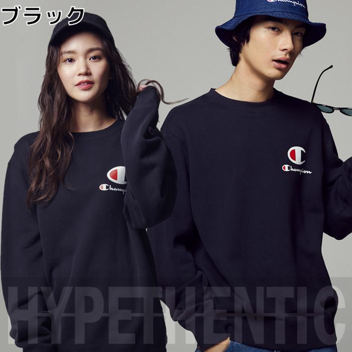 Champion Men Sweatshirt Script Logo Crewneck Black Original / Sweater