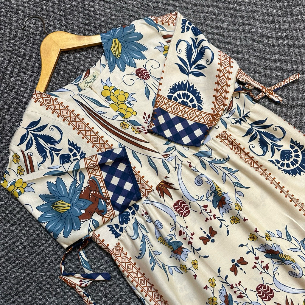 Daster Rayon Wanita Levi Dress Ruffle Daster Tangan 3/4 Rayon Motif Rempel Dada Terbaru