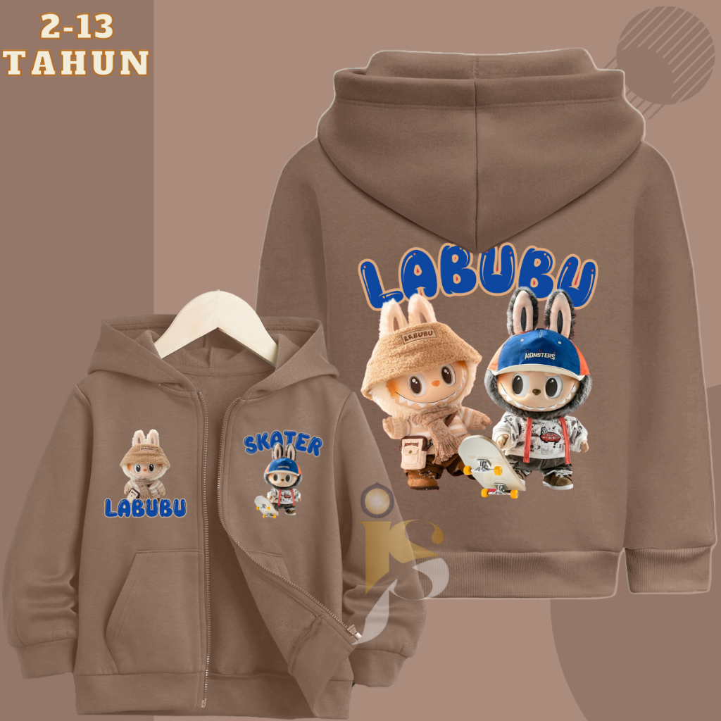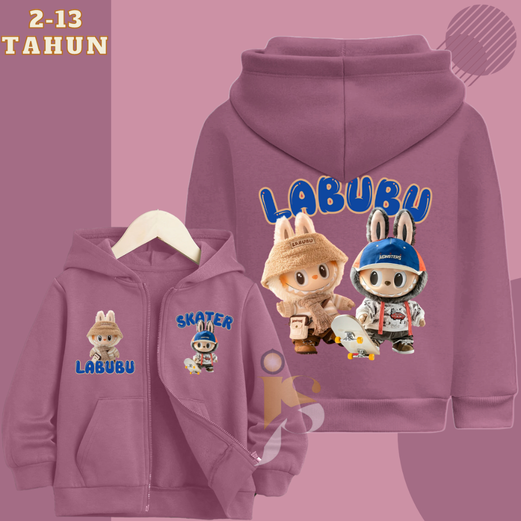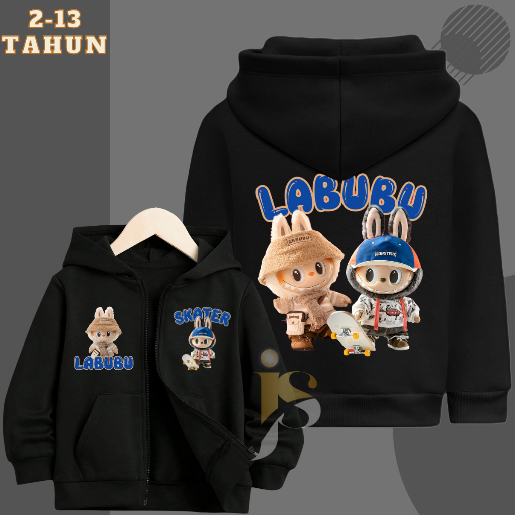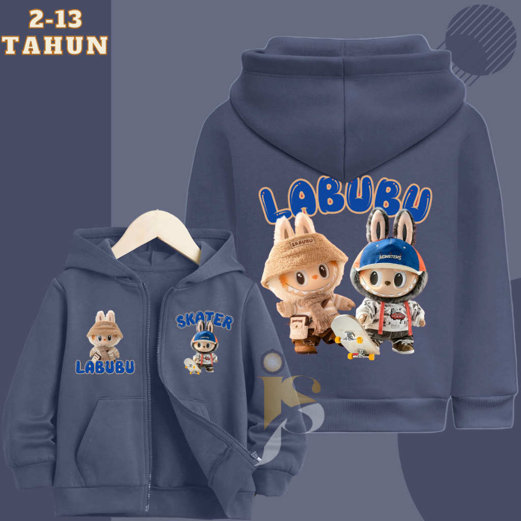 Jaket Zipper Anak Laki Laki Perempuan Gambar Labubu Viral Usia 2-13 Tahun Unisex