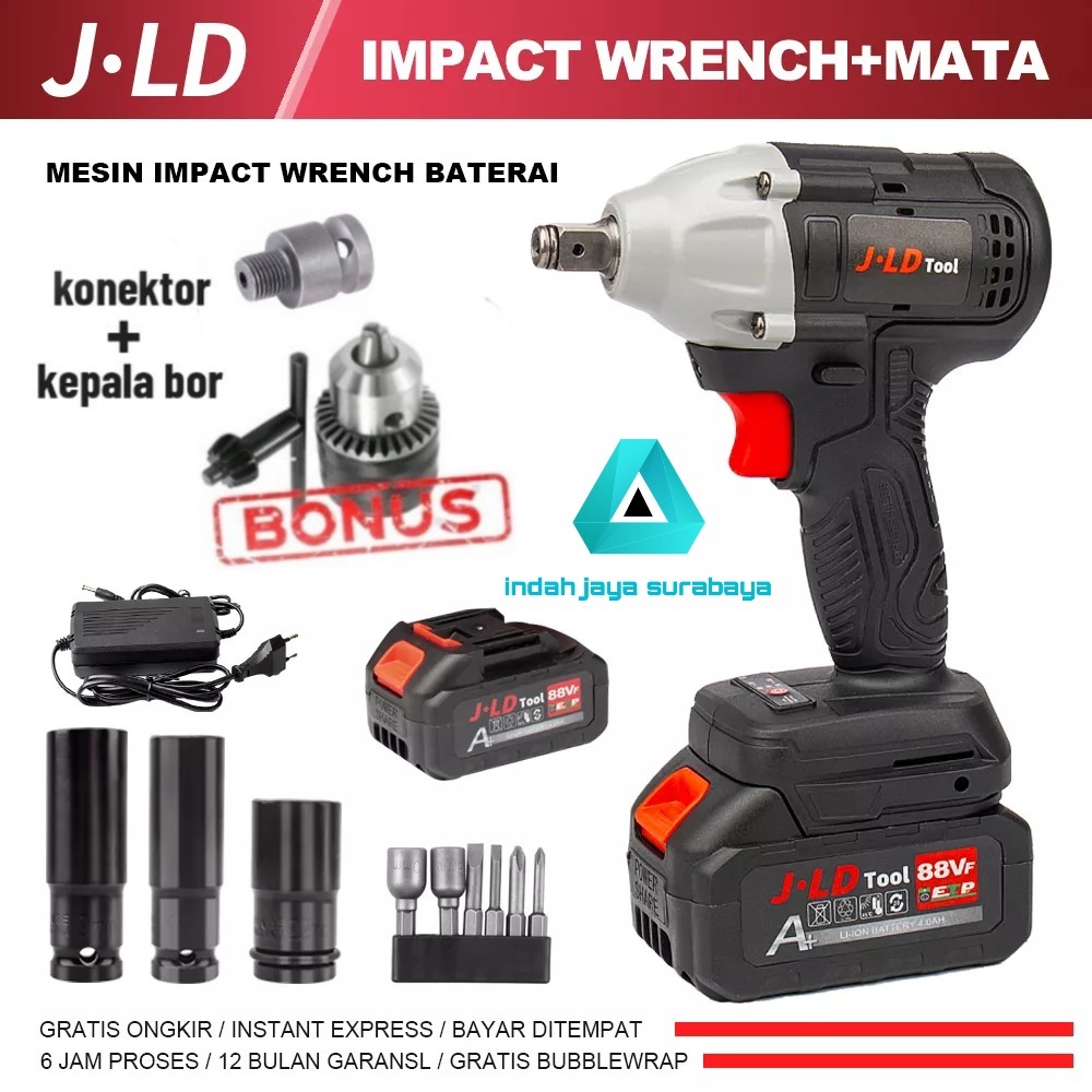 PROMO JLD 88V CORDLESS IMPACT WRENCH BRUSHLESS BATRE 88V + KEPALA BOR PEMBUKA BAUT MOBIL MOTOR CVT