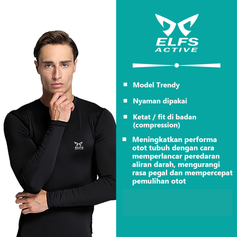 ELFS ACTIVE Compression Kaos Gym Pria Dry Fit Long Sleeve Shirt Baselayer