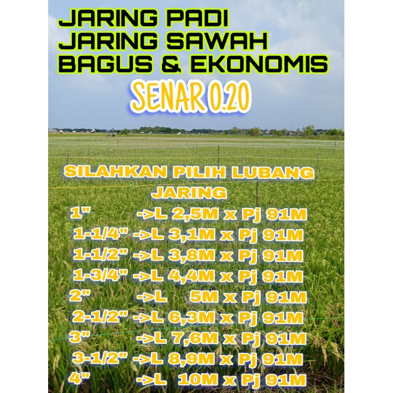 Penutup Padi Senar 020 / Jaring Sawah Senar 0.20 Siap Kirim Hari Ini --Silahkan Pilih Lubang--