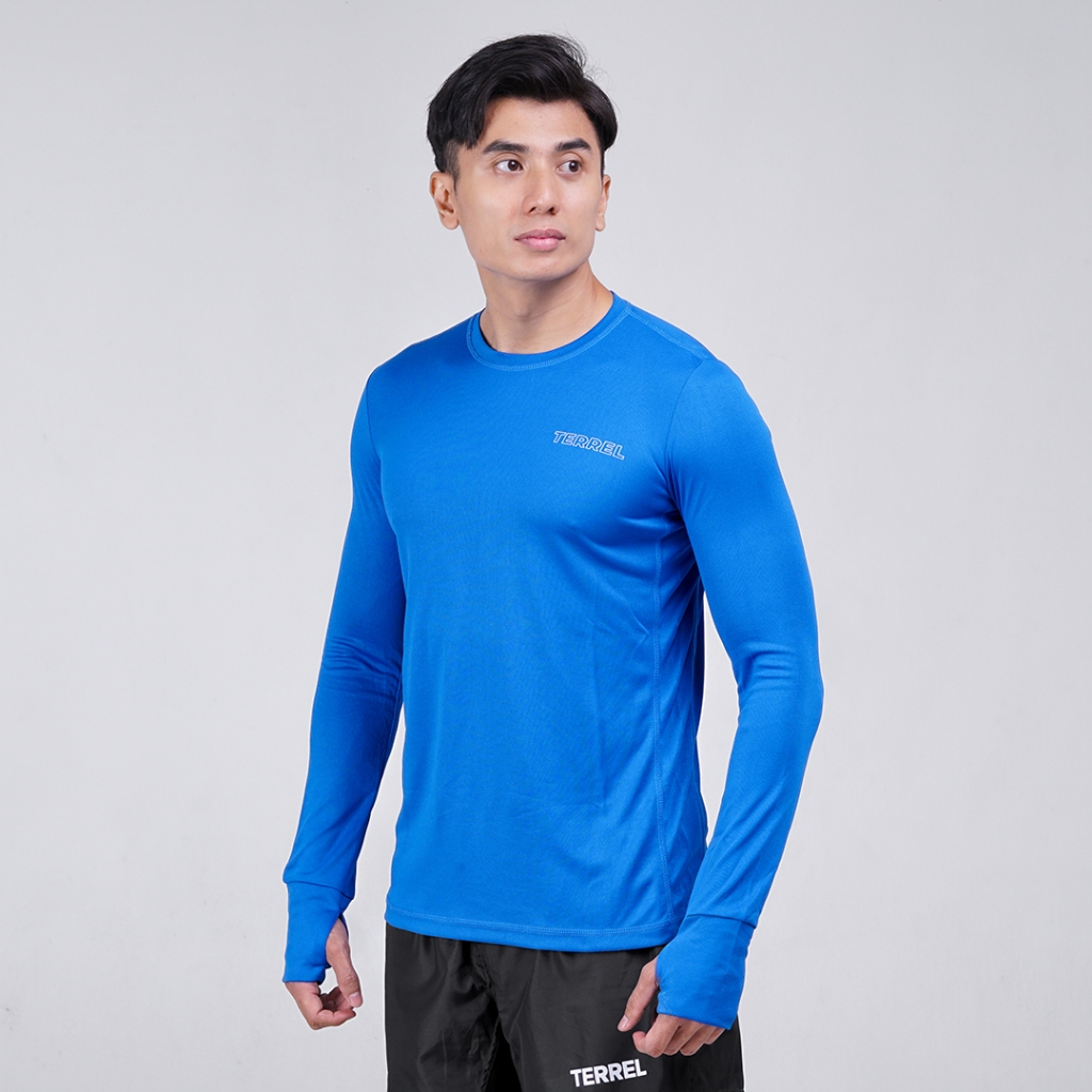 Terrel sportswear basic long sleeve blue baju atasan lengan panjang kaos olahraga dry fit pria lari running gym