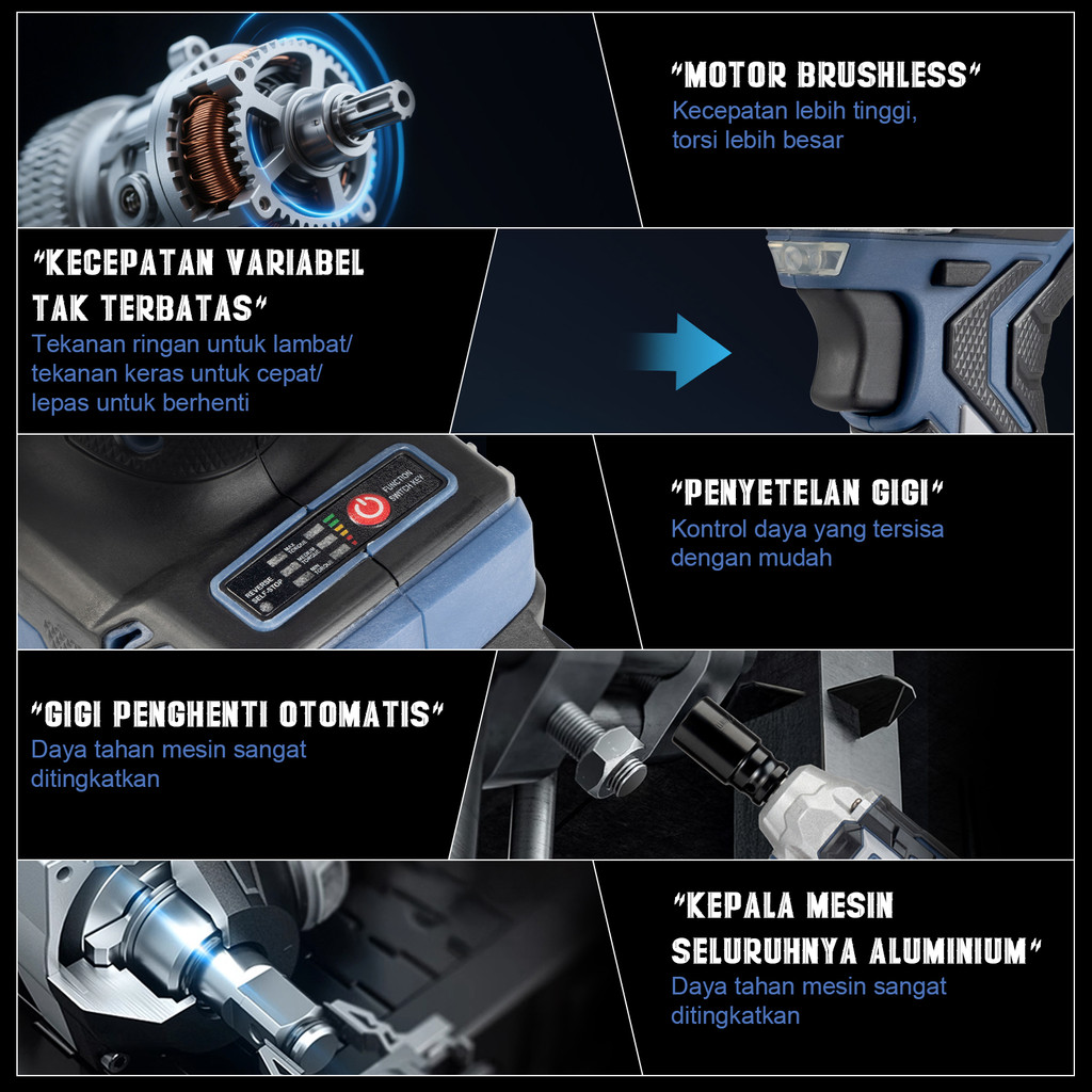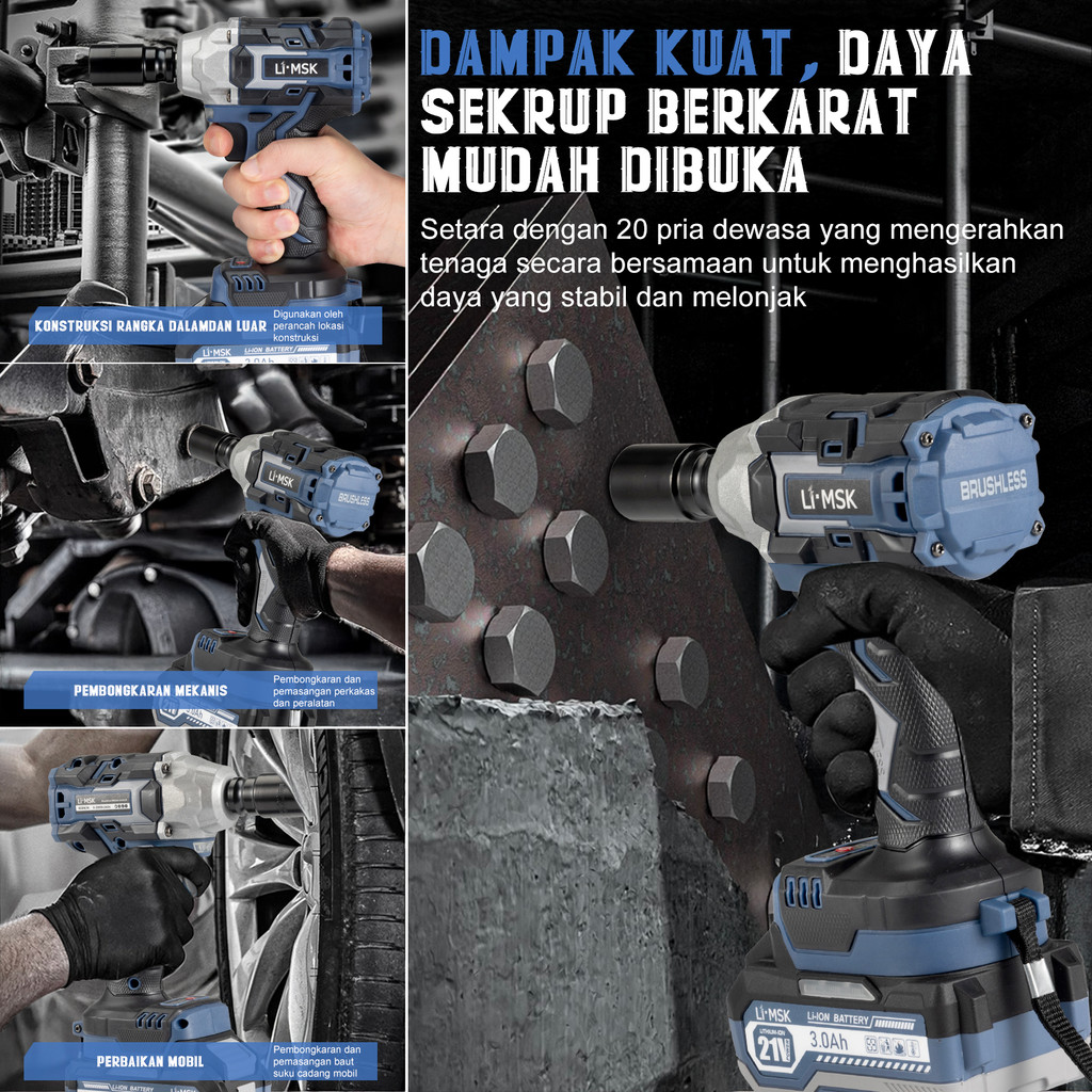 LIMSK Cordless Impact Wrench Brushless Impact Baterai Wrench 21V LI-1020