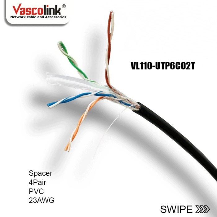 UTP Outdoor Kabel LAN CAT 6 / CAT6 (Black) Vascolink - 1roll 305meter
