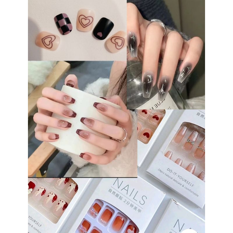 Kuku Palsu 24Pcs Free Lem Set Diy Instant Nail Art Fake Nails Bridal Wedding