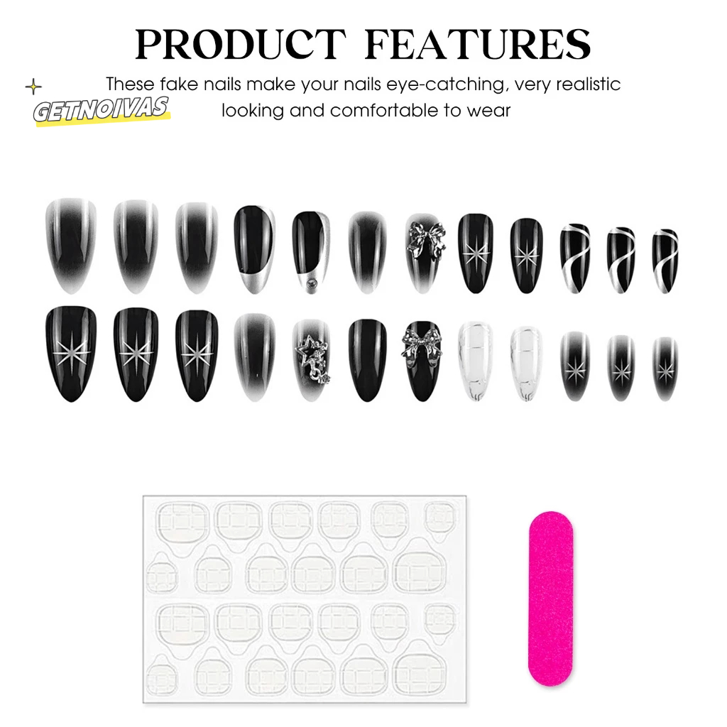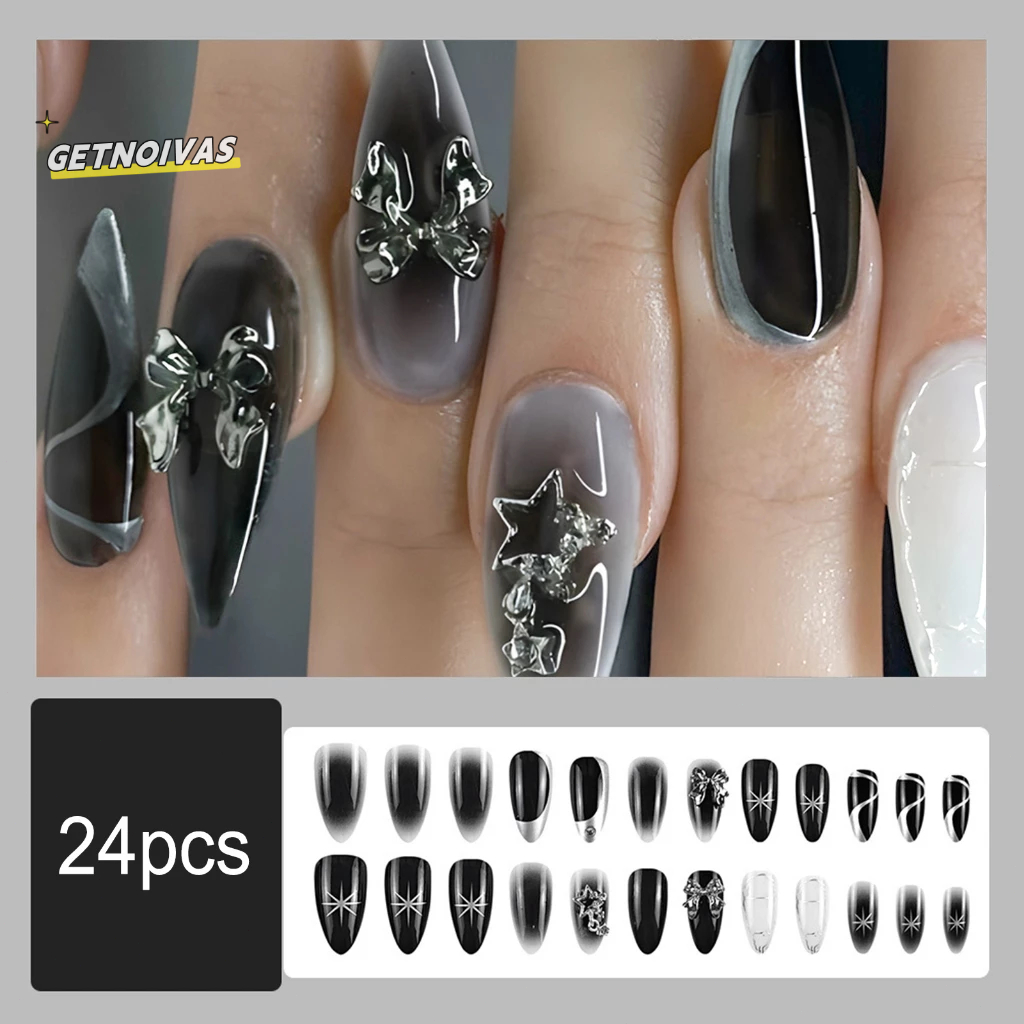 Kuku Palsu Panjang Hitam Putih Dengan Bintang Tahan Lama & Tidak Pernah Membelah Kuku Dan Blogger Kecantikan