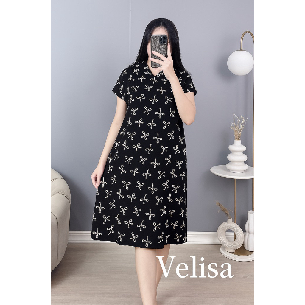 Daster Midi Wanita Velisa Daster Busui Friendly Homedress Lengan Pendek Motif Elegan & Adem