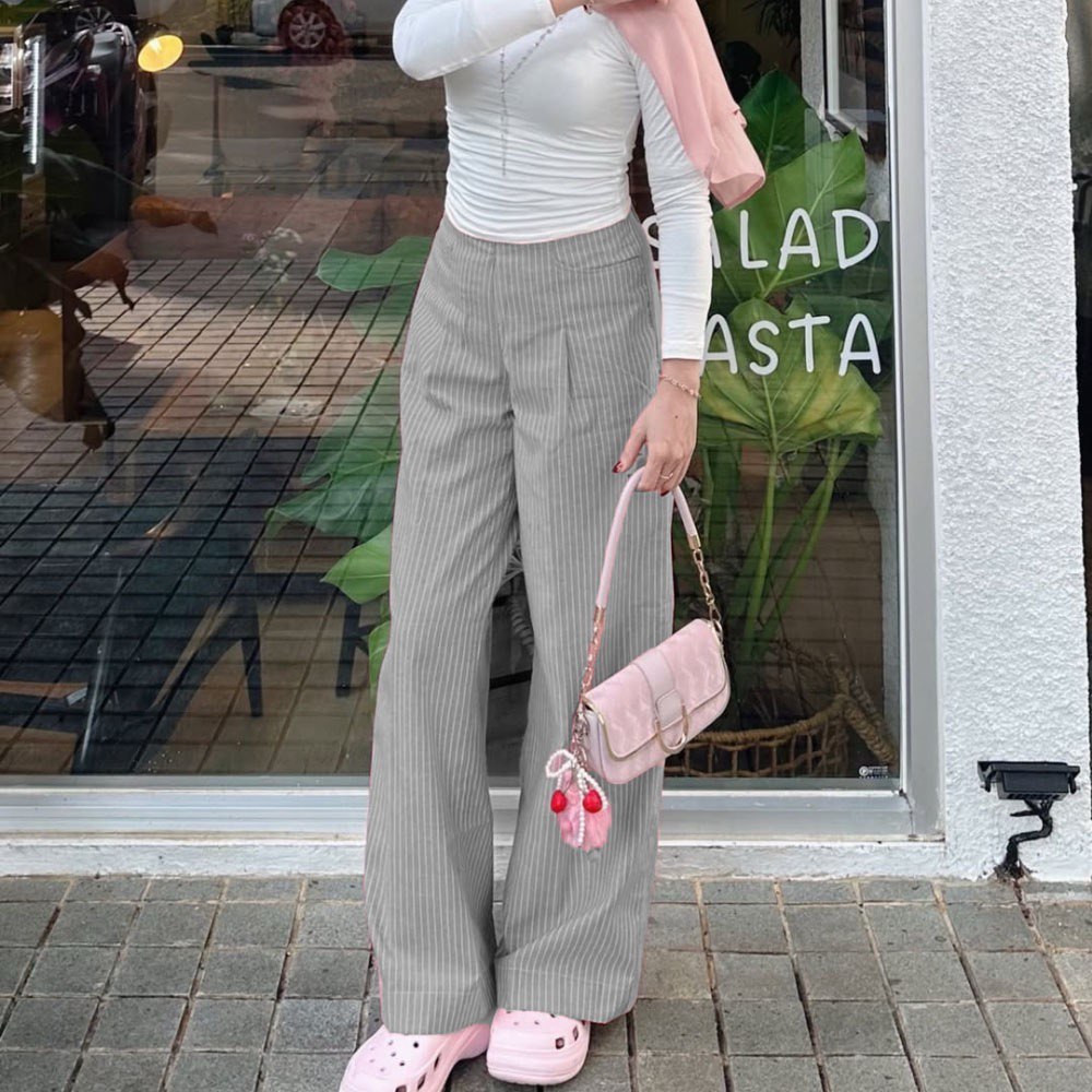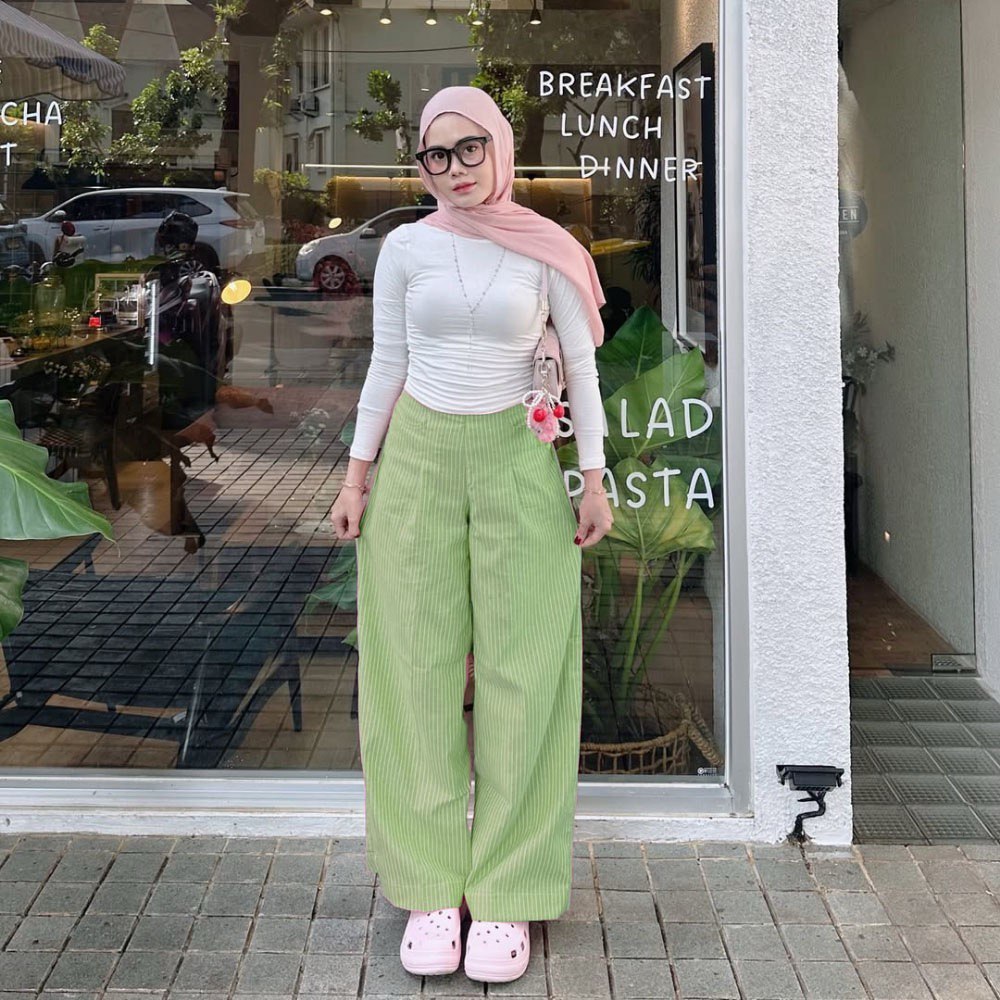 City Pants | Celana Panjang Wanita Kantor Kerja Kuliah Tidur Santai Motif Garis Kulot Pinstripe