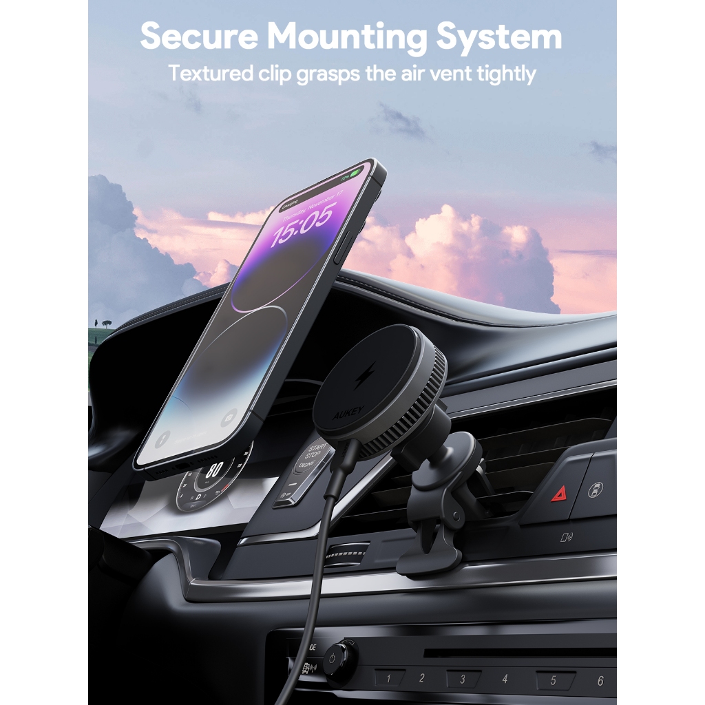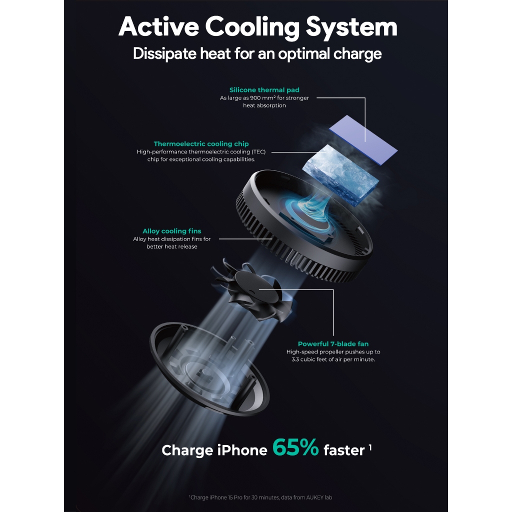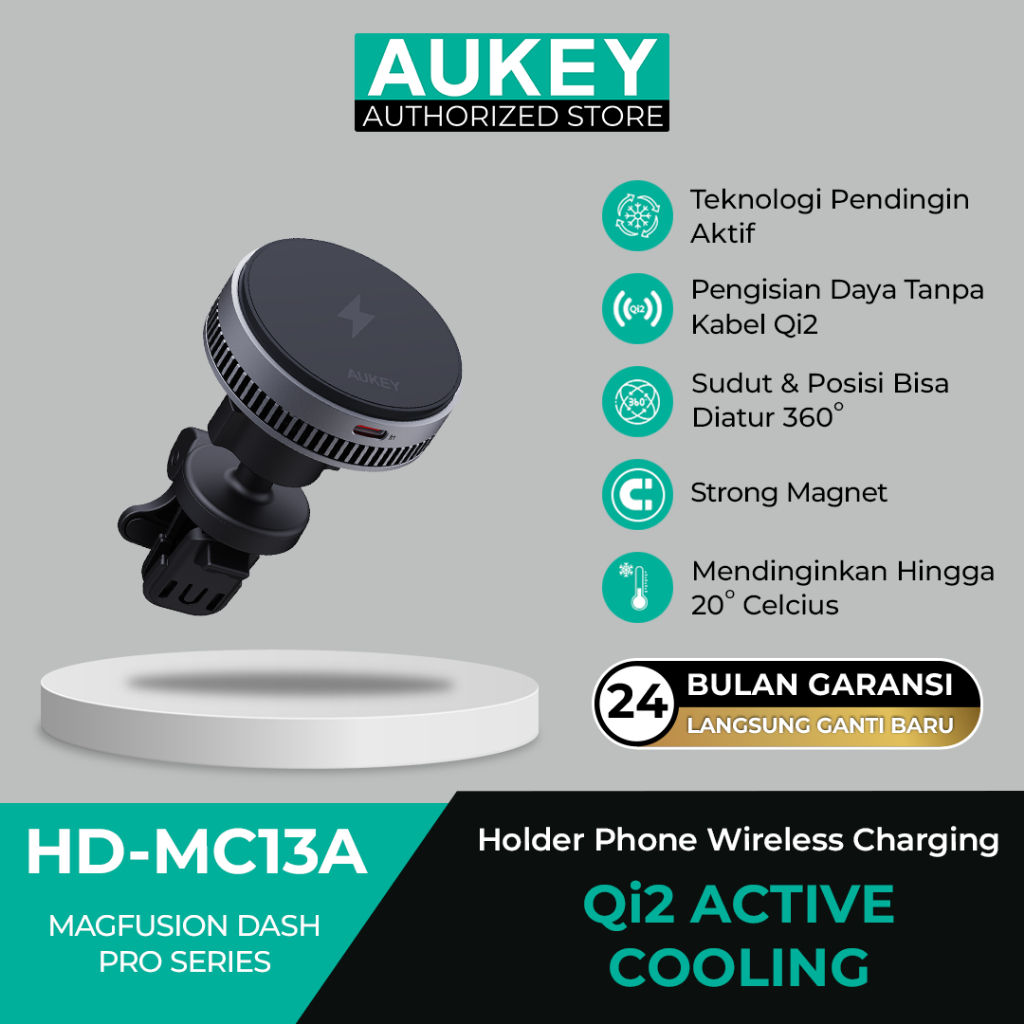 Aukey Holder Qi2 Magentic Phone Mount 15W Casan Dudukan HP Mobil Active Cooling Technology Adjustable Angle - HD-MC13A