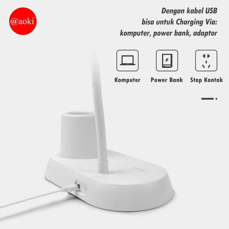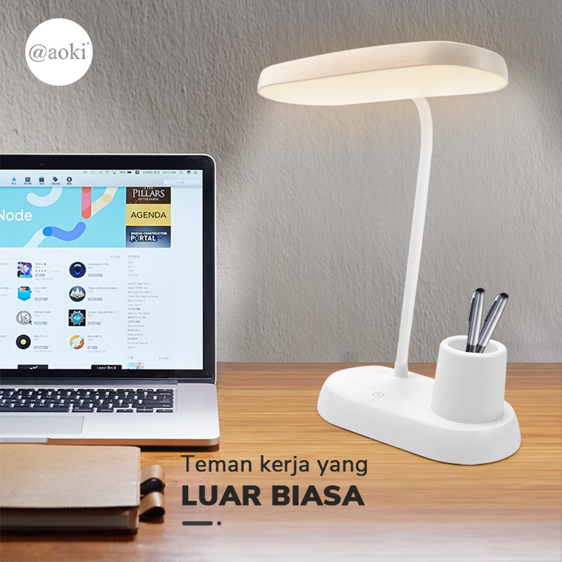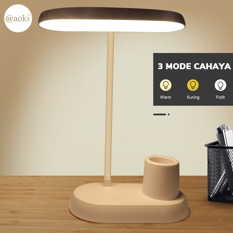 [PROMO] Lampu belajar tempat pensil tricolour sentuh 3warna dual baterai Hp Holder Baca Meja Kerja