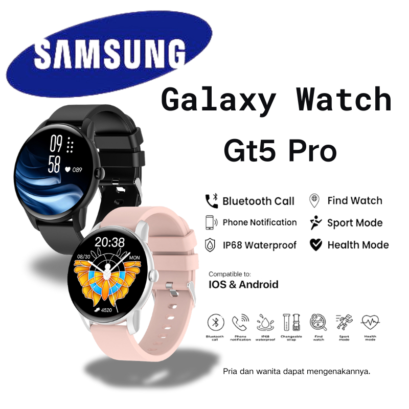 【ORI】Samsung Jam Tangan Pintar Asli GT5 pro dengan Pemantauan Suhu 24 Jam Smartwatch Olahraga Fitness Tahan Air Bluetooth Smart Watch Wanita Untuk Android IOS Smartwatch Wanita Pria