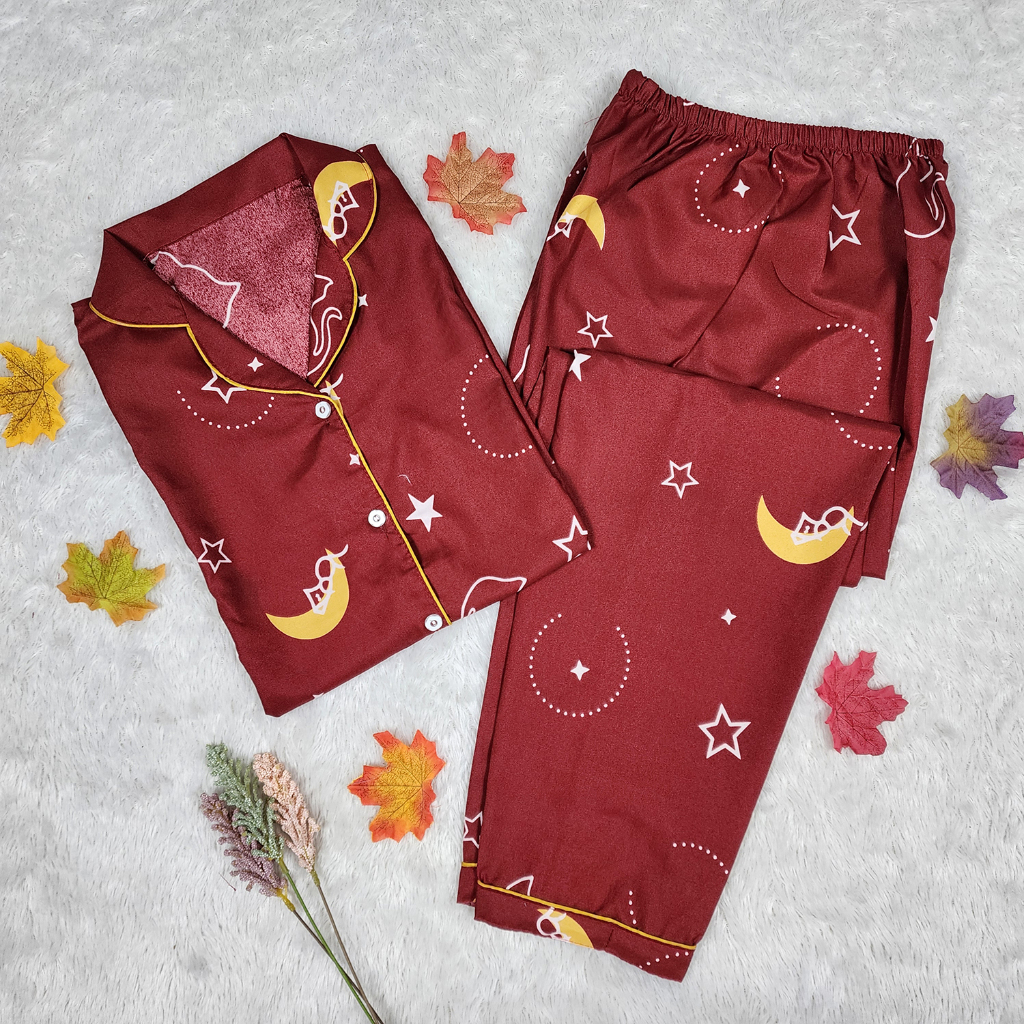 Baju Tidur Wanita Piyama Cewek Dewasa Lengan Pendek & Celana Panjang Ld 104 Cm Untuk Bb 36 - 55 Kg