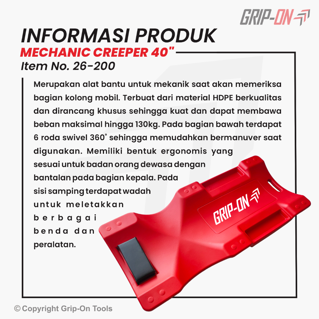 Grip-On Mechanic Creeper 40 Inch Alas Kerja Mekanik / Alas Periksa Kolong Kendaraan 40 Inch