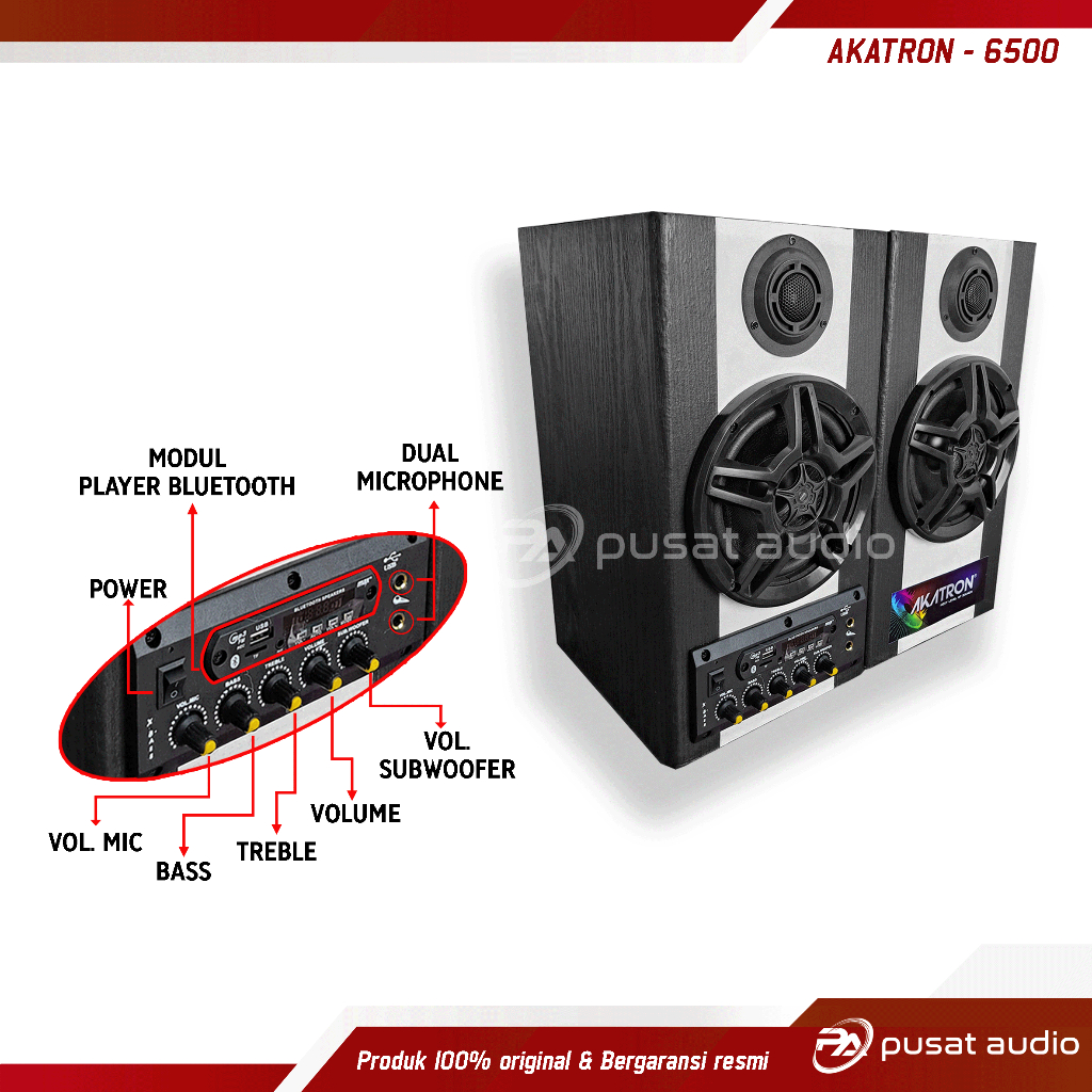 Speaker aktif AKATRON karaoke Bluetooth subwoofer BASS MENGGELEGAR sound 6 inch inchi TYPE 6500