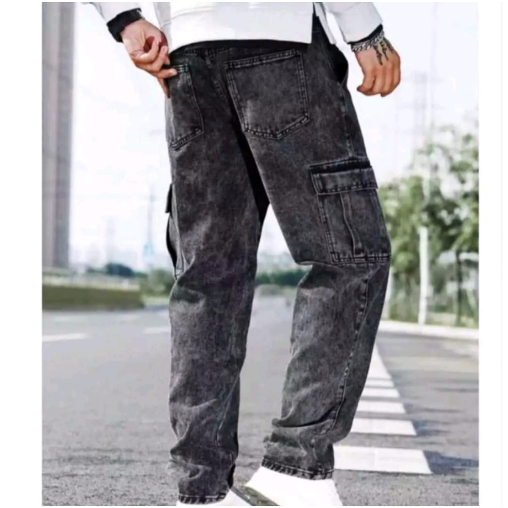 Celana Cargo Jeans Pria Celana Baggy Jeans Gombrong Celana Cargo Panjang Pria