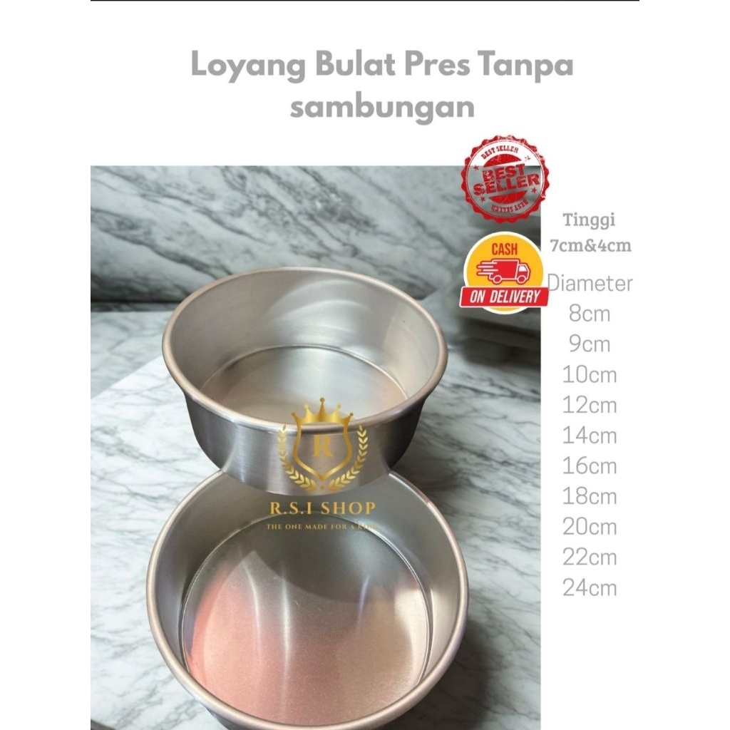 Loyang Kue Bulat Press Tanpa Sambungan - Aluminium Anti Karat, Tersedia Berbagai Ukuran