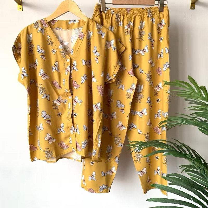 Piyama Rayon Vneck Baju Rumahan Cewek Adem Nyaman