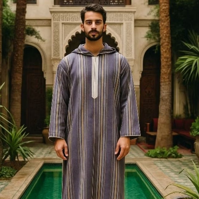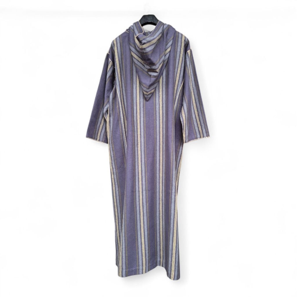 Djellaba.id Gamis Umroh Baju Muslim Jubah Sholat Hoodie Jalabah Kapucong Maroko Pria Flanel Navy Salur