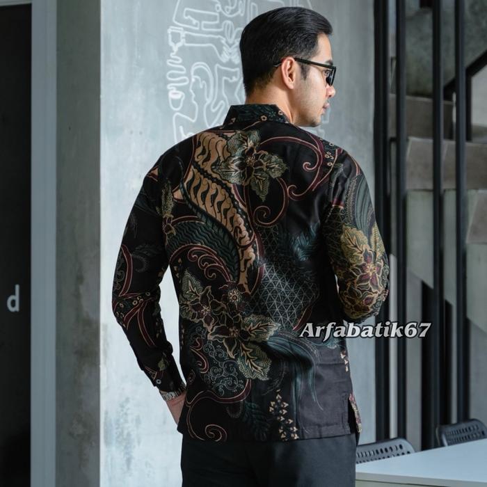 PARSHA Hitam Kemeja batik pria Lengan panjang katun prima premium lapis furing hero ready seragamam