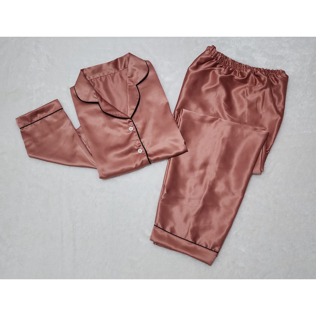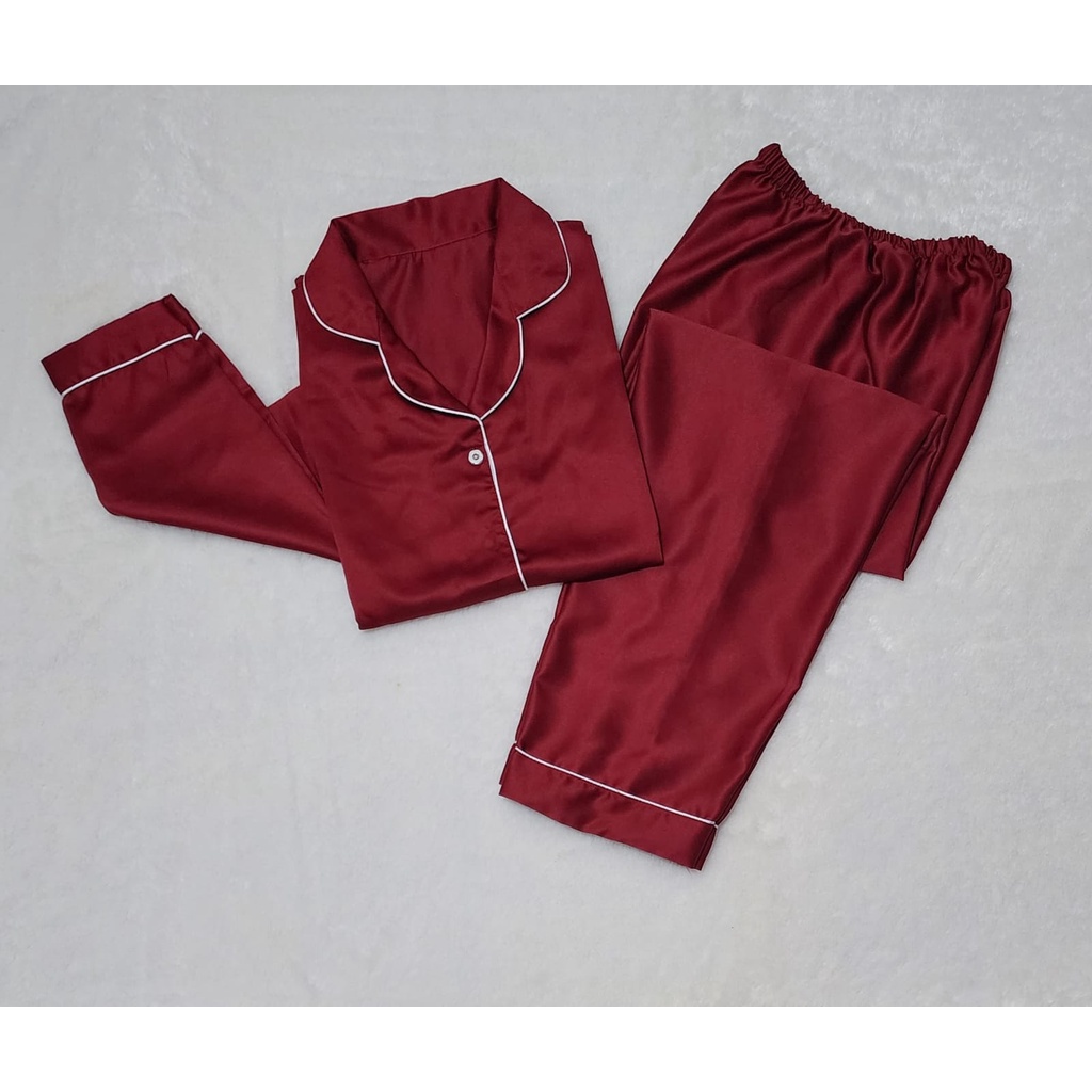 Baju Tidur Cewek Satin Velvet Tangan Panjang Piyama Wanita Satin Velvet