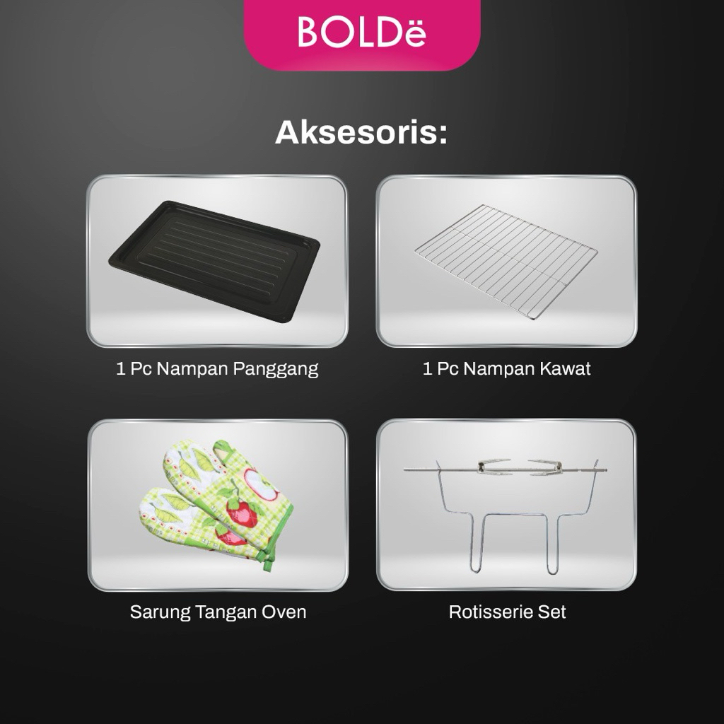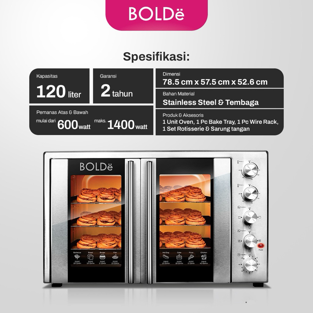 BOLDe OVEN BAKING DUAL ARC 120 liter - OVEN BIG WINDOW GARANSI 2 thn - FREE PACKING KAYU