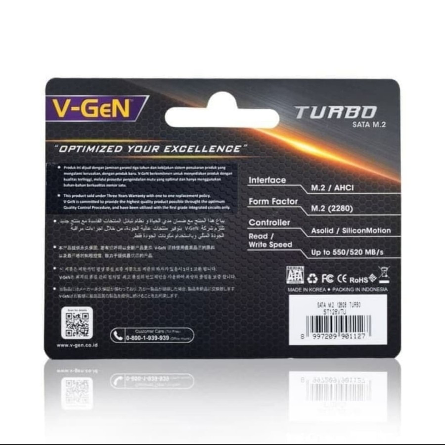 SSD M.2 Sata Turbo V-GeN 128GB 256GB 512GB 1TB SSD V GeN M2 Turbo Speed 550Mbps Ssd Untuk Laptop Garansi Resmi Vgen Plat