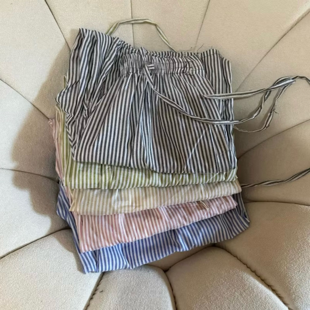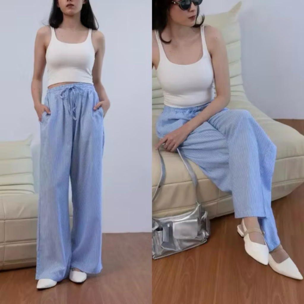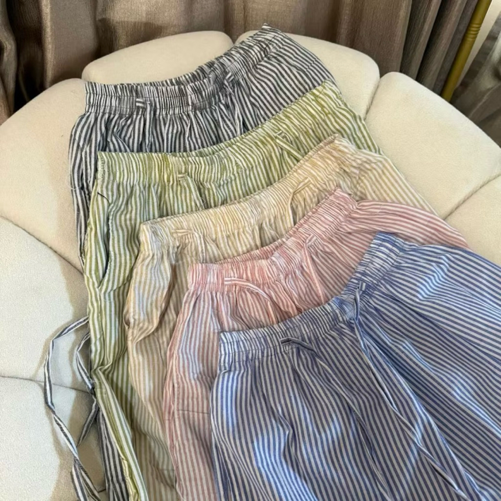 FAFASHION | Kulot Stripe Pants Celana Wanita High Waist Katun Premium Baggy Motif Salur Nyaman Jatuh