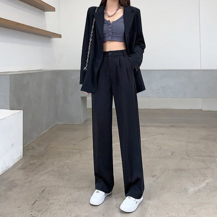 PETITE - Loose Pants High waist Celana Kerja Wanita Kulot Abu