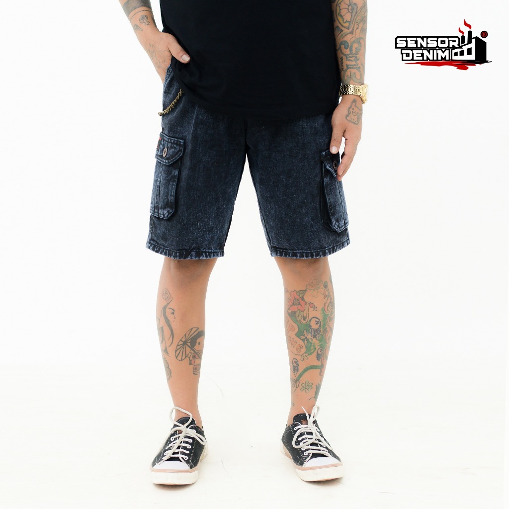 Celana Jeans Cargo Pendek Pria Sensorline Washing Snow Celana Cargo Laki Laki