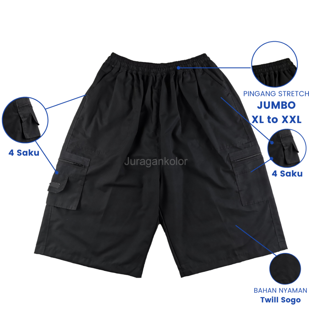 Celana Pendek Pria Jumbo Kargo Polos Kolor Santai Cowok Saku Kantong Cargo