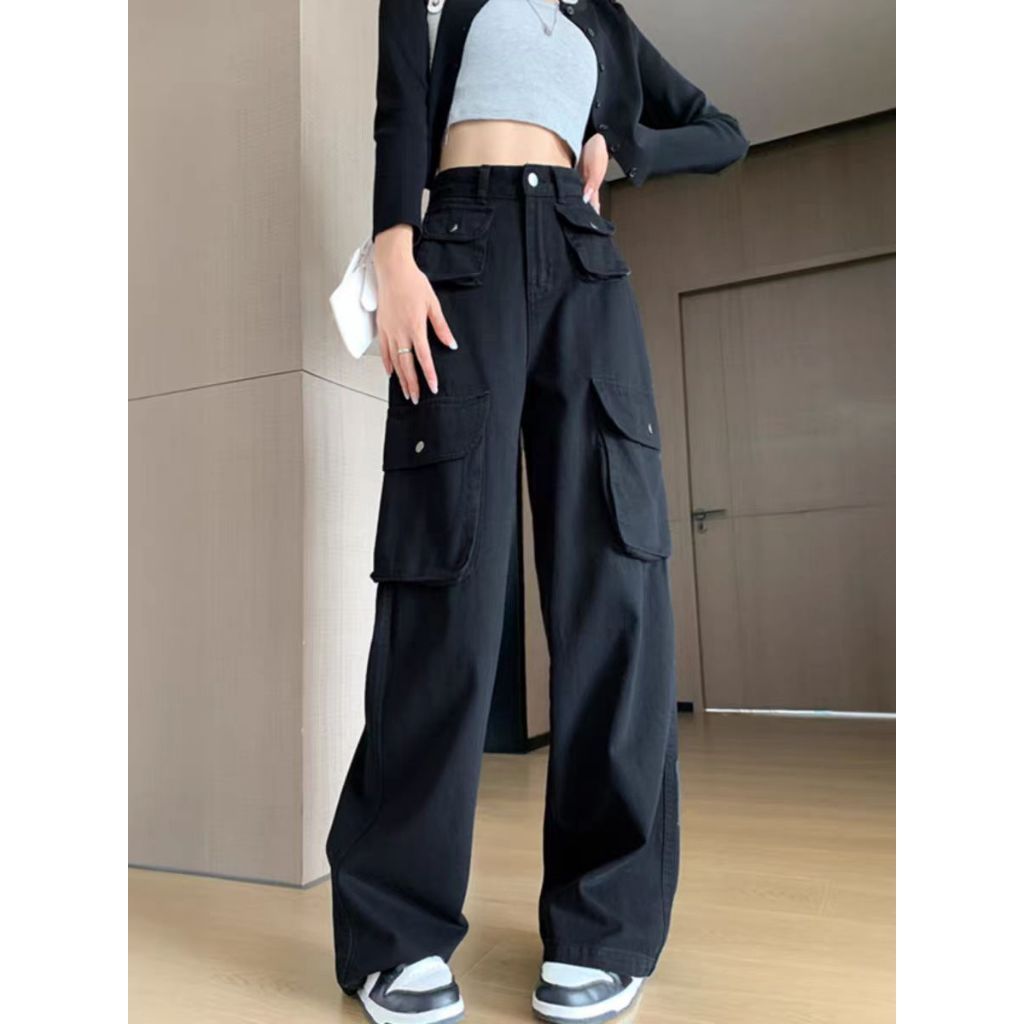 Apshana Jeans - Celana Cargo Jeans Wanita Highwaist Loose pants Celana Jeans Cewek Celana Cargo Denim ( realpict )