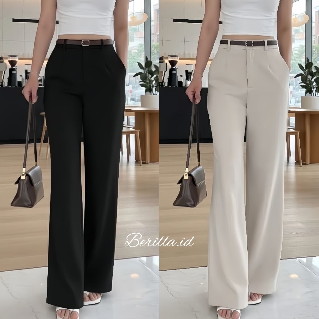 Berilla - Celana Wanita Wide Leg Pants - Mor Pants Celana Kulot High Waist Premium