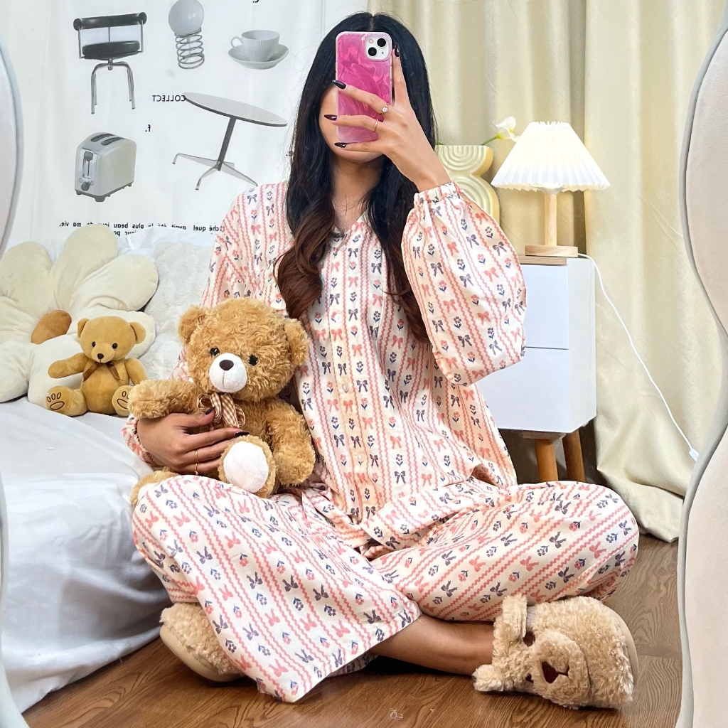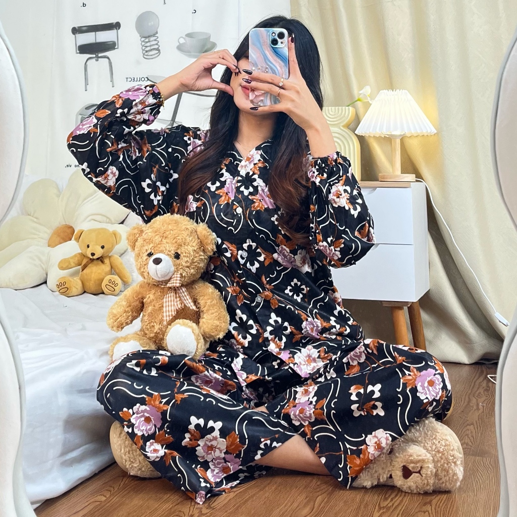 Baju Tidur Wanita Piyama Sapasara Lengan Panjang Baby Doll Bahan Rayon Adem Busui Friendly