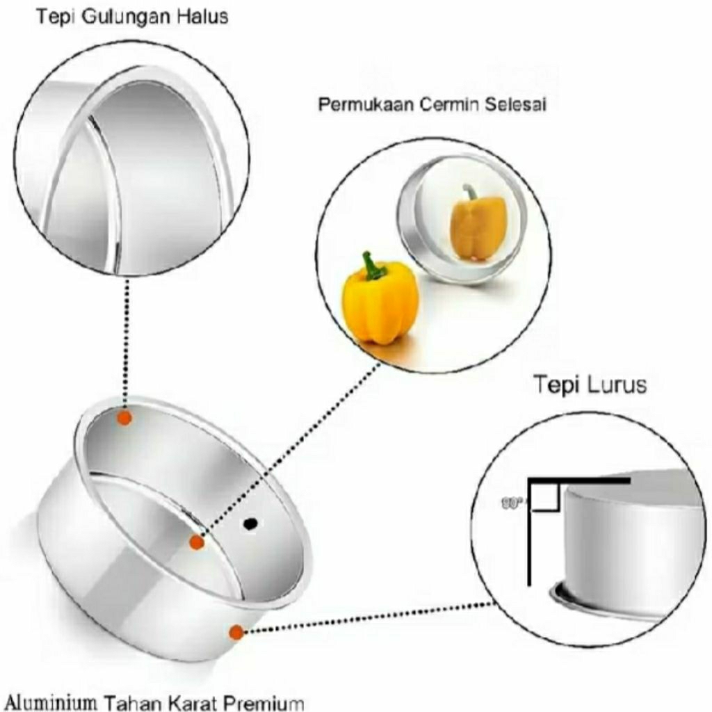 Loyang bulat pres tanmpa sambungan bahan alumunium ukuran.8.9.10.12.14.16.18.20.22.24cm