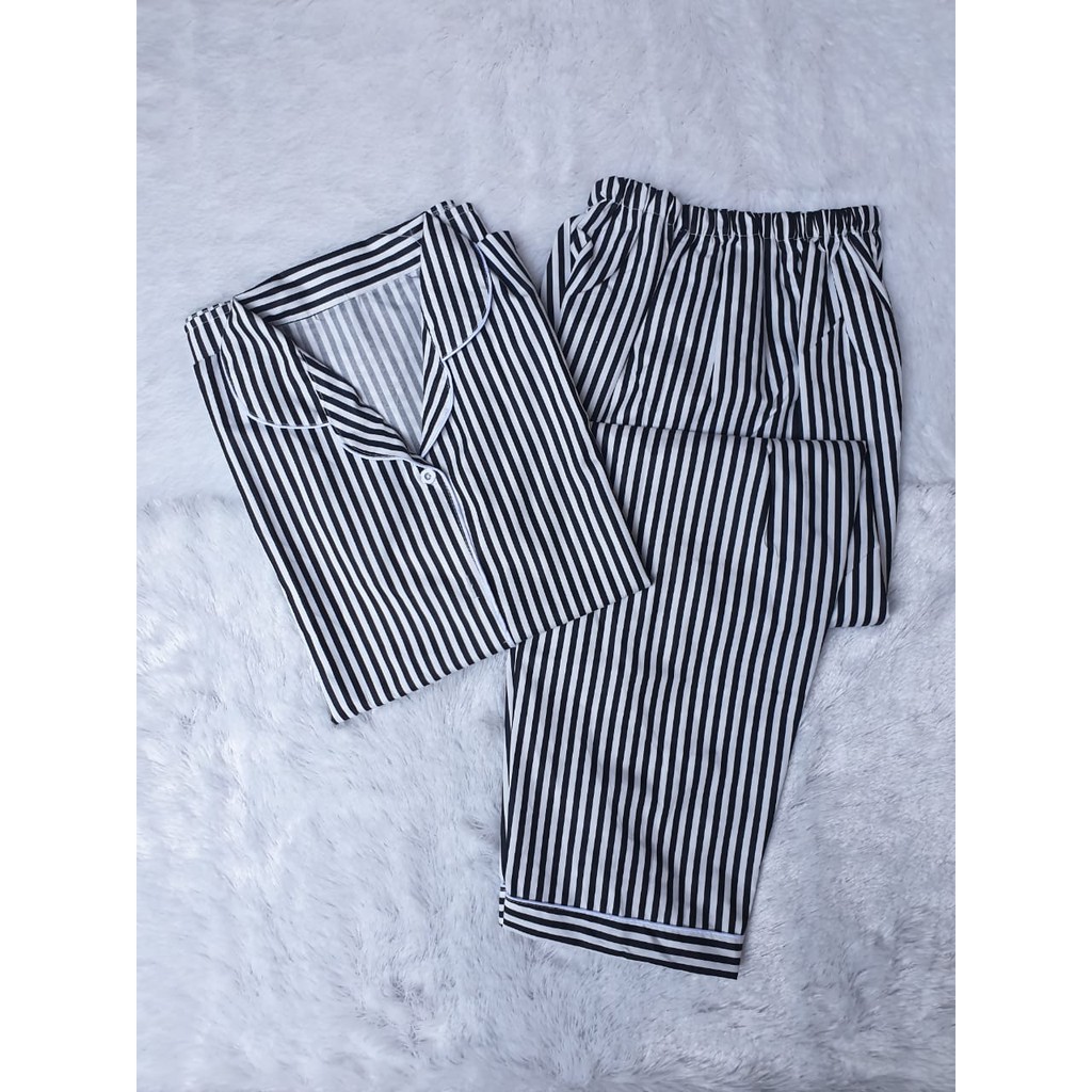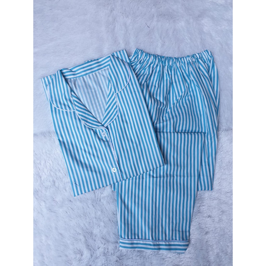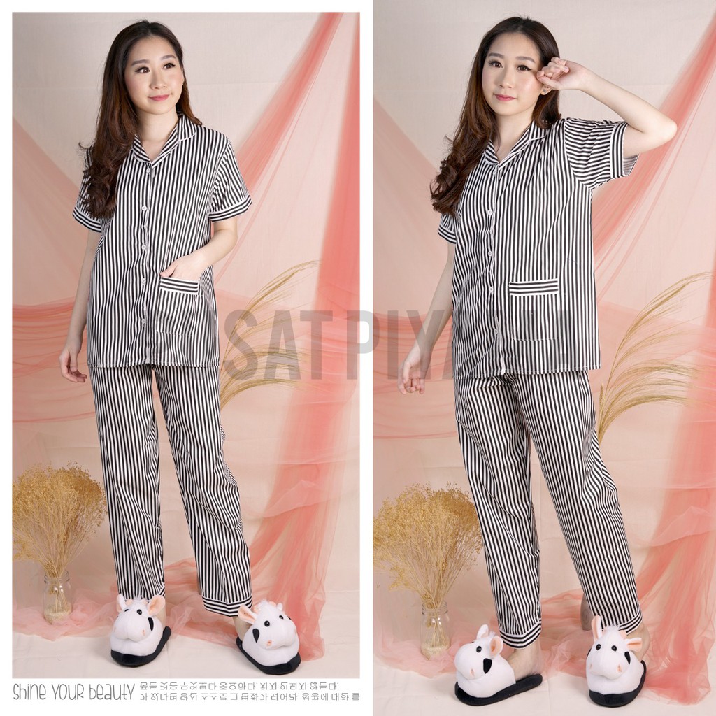 Piyama Baju Tidur Cewek Motif Salur Pajamas Wanita Dewasa Motif Salur Kekinian