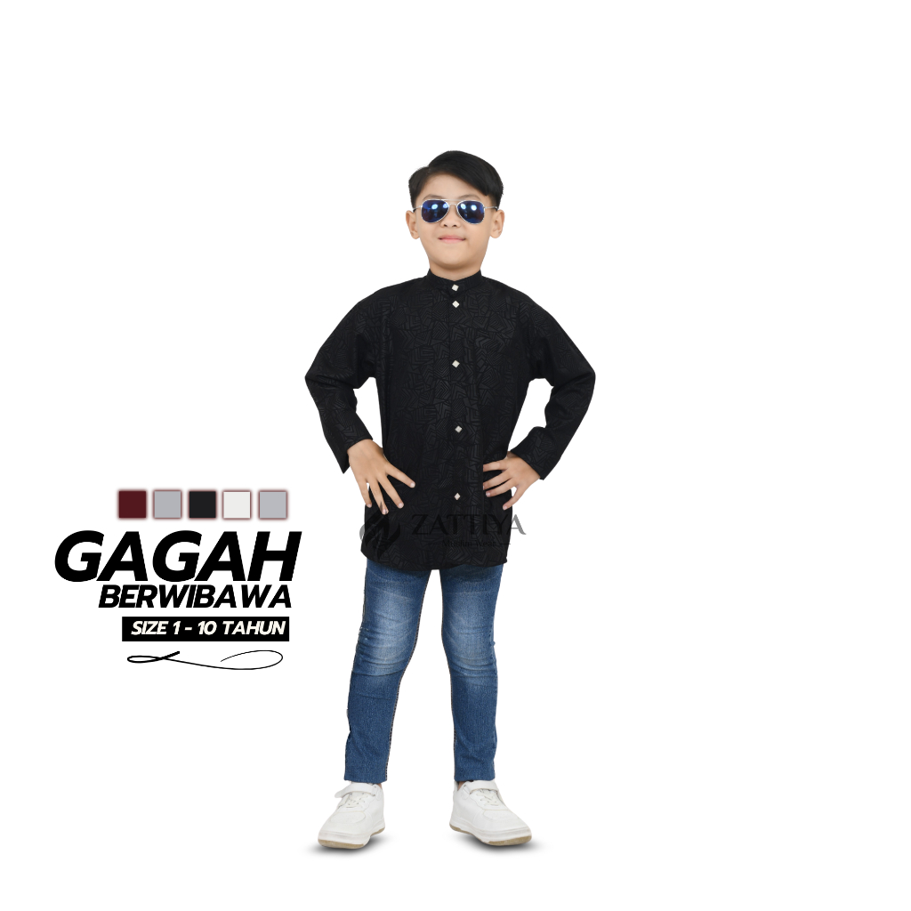 Pakaian Terbaru Baju Muslim Kemeja Koko Kemko ANAK Pria Sultan Kasual Dewasa Hitam Lengan Panjang Kurta Embos Trendi & Elegan ZATTIYA