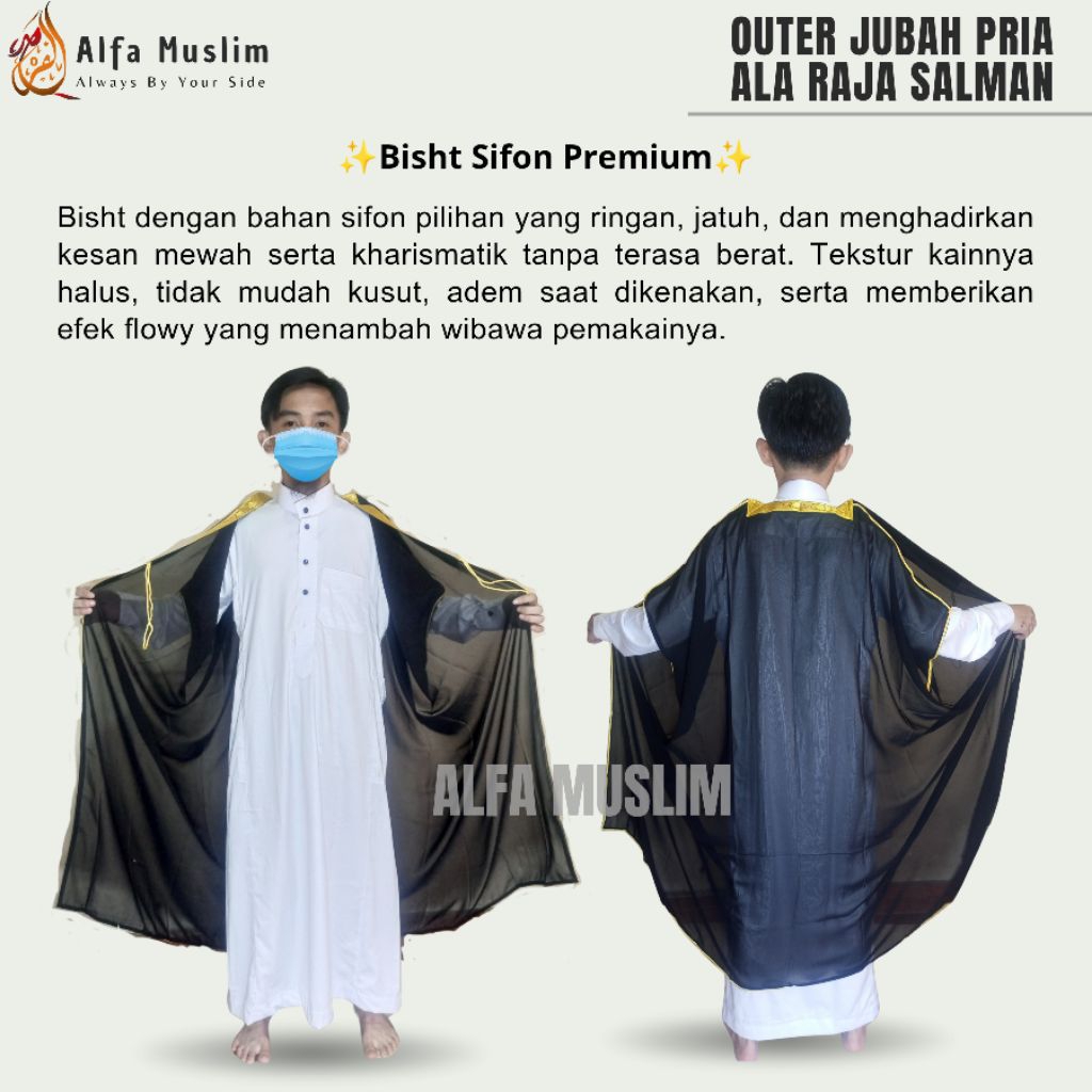 Bisht Anak Raja Arab, Bahan Sifon/Semi Transparan, Luaran Jubah Raja Salman, Alfamu x Alharomain