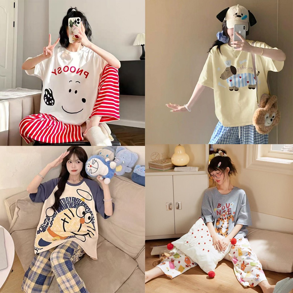 Baju Tidur Wanita Set Piyama Pajama Lengan Pendek Celana Panjang Motif High Quality
