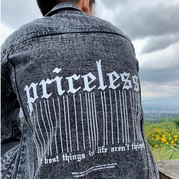 Jaket Jeans Printing Sablon Pria Sandwash Priceless Jaket Cowok Dewasa