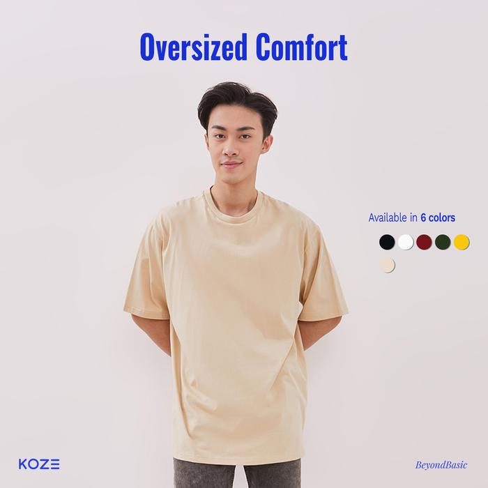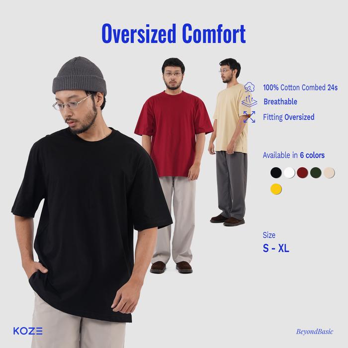 KOZE - OVERSIZED TEE COMFORT PREMIUM COMBED 24S LARGE SIZE T-SHIRT - KAOS LOS OVERSIZED RIB BAJU BASIC KATUN COWOK LENGAN PENDEK - BLACK, S